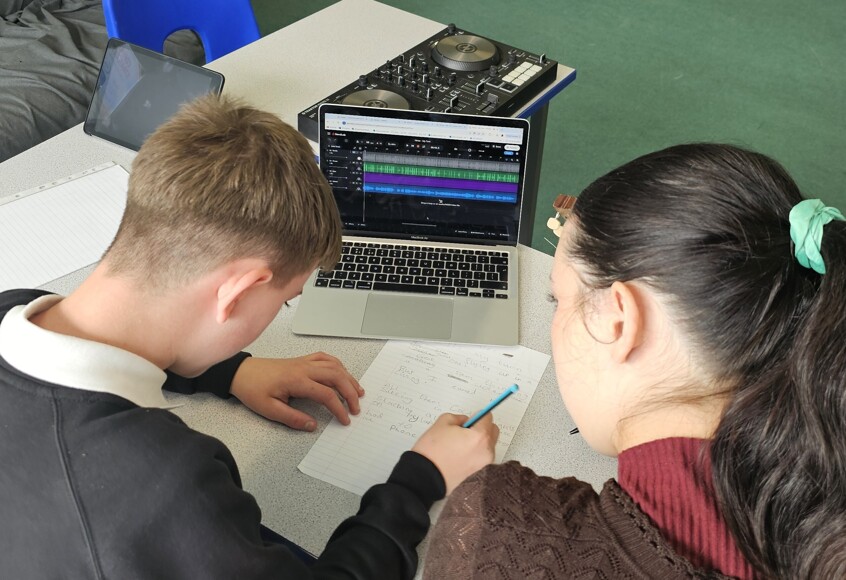 Our Music Therapist Pippa was working with pupils today on writing lyrics. Through listening to songs they like, together they wrote lyrics inspired by the music and rhythm of their favourite artists.
