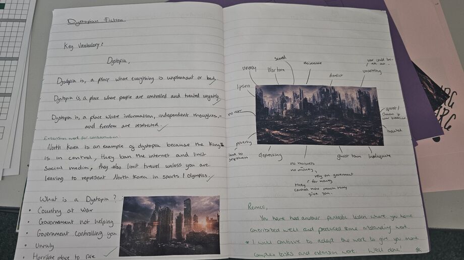 In English, pupils have been exploring dystopian & utopian fiction. We have been reading The Hunger Games books by Suzanne Collins and have been recognising the styles of dystopia and utopia in the language when describing the Districts and the Capitol.