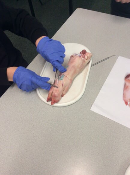 Pupils have been dissecting pigs feet in Science. Content warning: the photos below contain depictions of dissection which some may find disturbing.