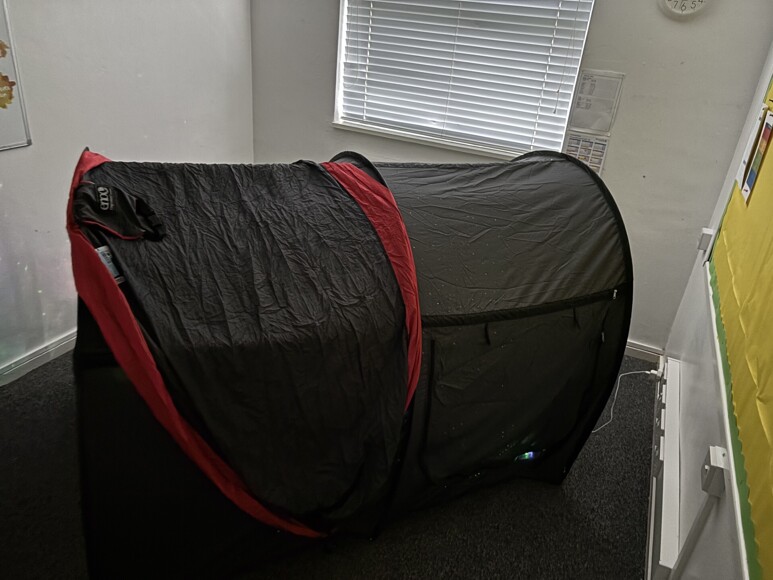 The Hub now includes a blackout pod equipped with sensory sound and lighting, as well as weighted blankets and a range of other resources designed to help pupils feel calm and regulated.